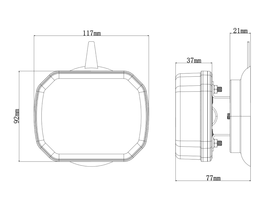 PRODUCT CODE: ESLW54790Set of magnetic rear LED lamps operates at 12V. Each lamp has dimensions 118x93mm and has functions: position, stop, direction indicator and number plate lamp. Lamps come with a plastic case, that contains a charging cable and a USB charger for a 12V cigarette socket.