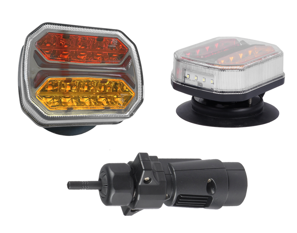 Wireless set of LED rear signal lamps 118x93mm magnetic base 7-pole plug CANBUS