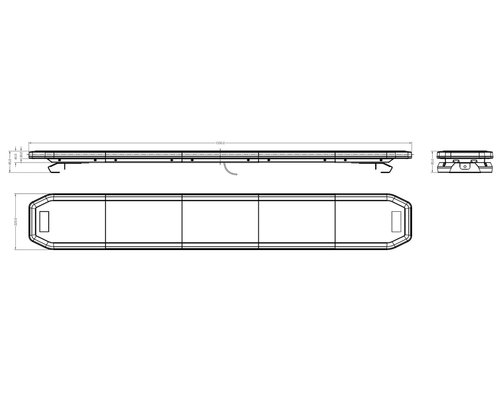 LED Lightbar with amber LEDs, operates at 10 to 30V. The lightbar is 1500mm long, 220mm wide and is ECE R65/EMC R10 approved. Supplied as a complete kit with screws, washers, brackets and wire controller. It is connected via a long cable and separate cable with controller.