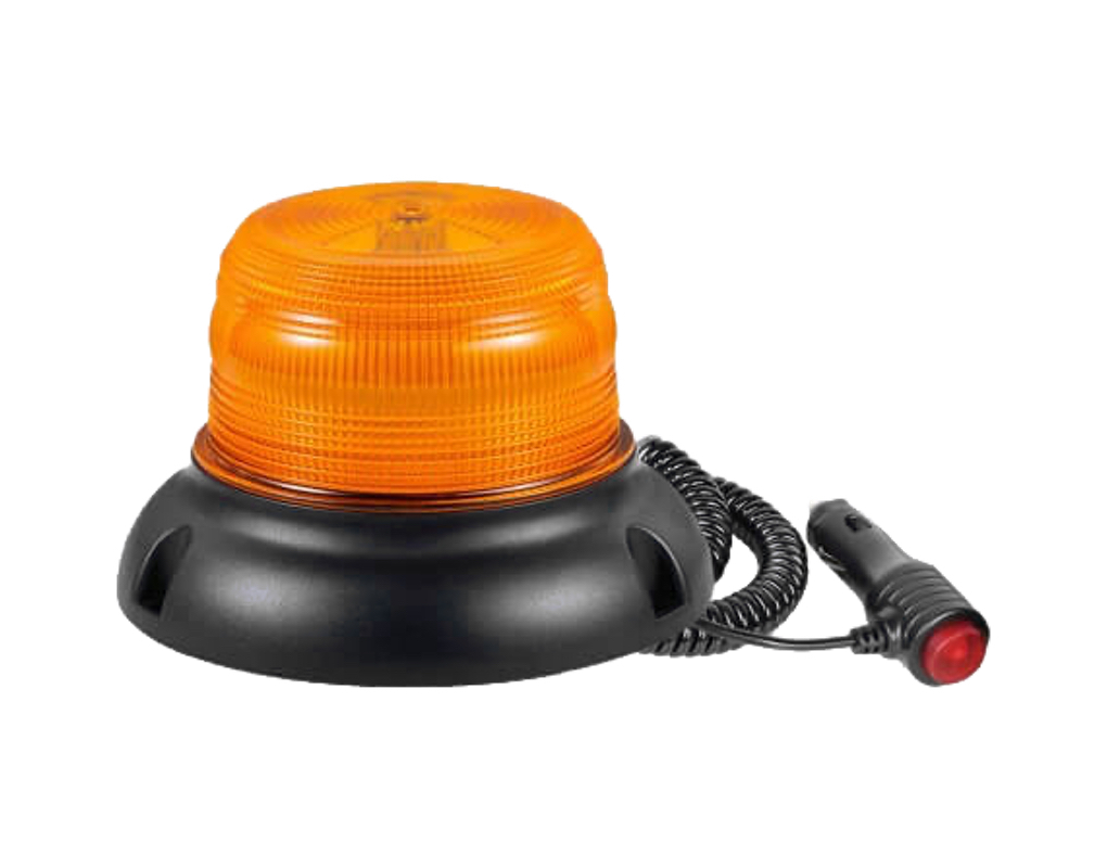 COD: EBLM59553Faro lampeggiante LED arancio con diametro di 130mm (87mm vetro), funziona a tensione elettrica 12-24V con 22W di potenza. Fissaggio con la base magnetica.