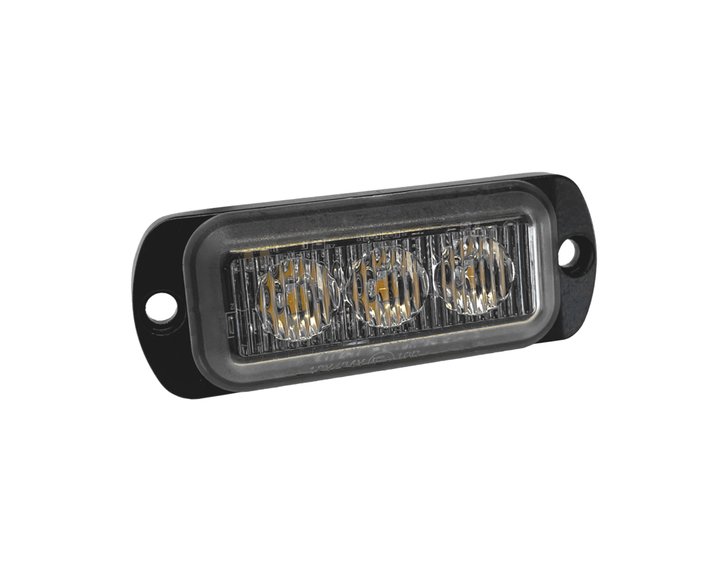 ŠIFRA: ELEO59316Svetilka bliskajoča s tremi oranžnimi LED diodami. Dimenzije bliskajoče svetilke so 77x29mm in debelino 10mm. Deluje na električni napetosti od 12 do 24V. Ima 21 vzorcev bliskanja ter je ECE homologirana. Na površino se pritrdi z dvema vijakoma.