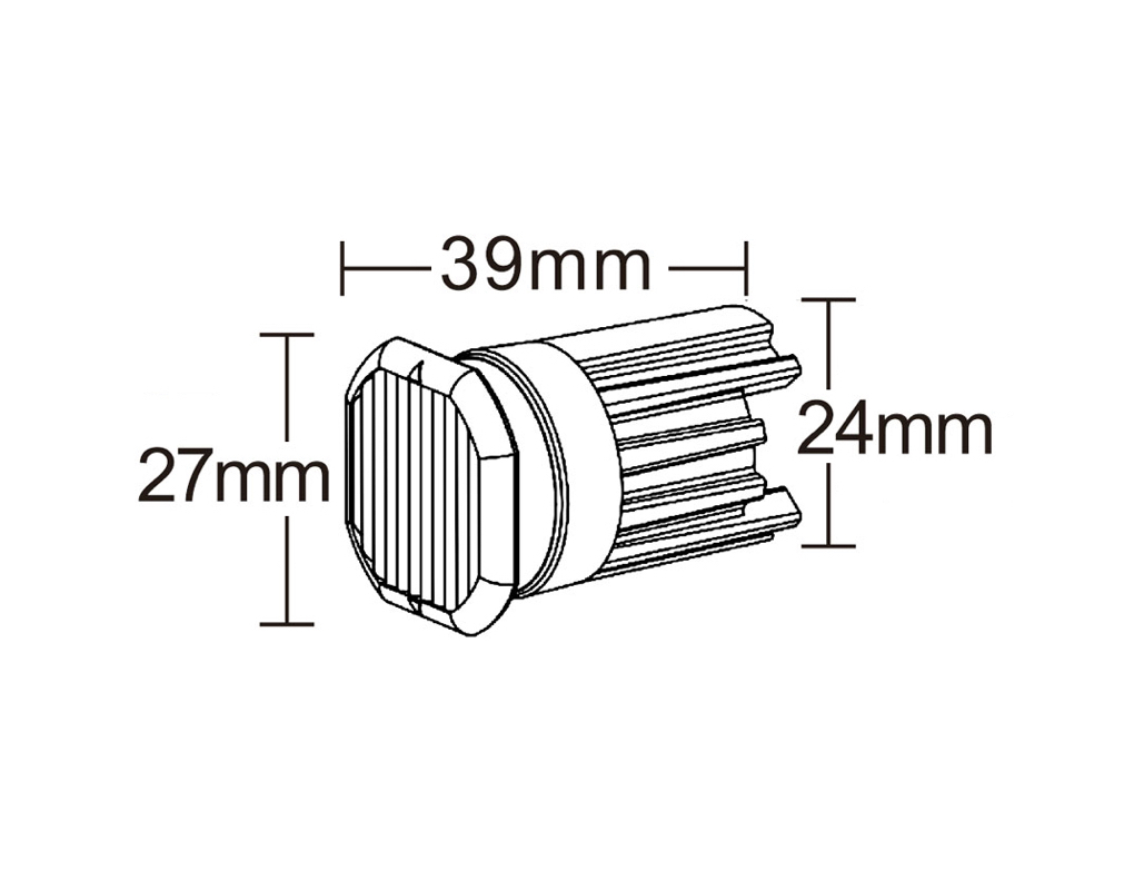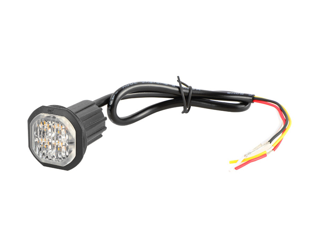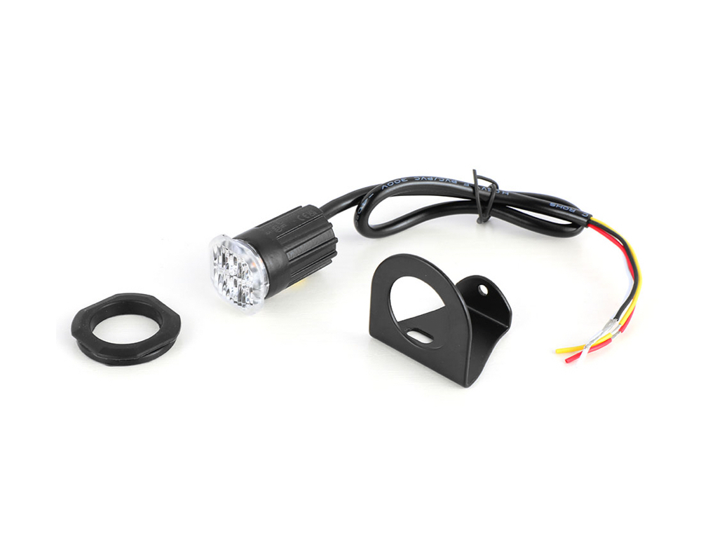 Svetilka bliskajoča s štirimi modrimi LED diodami. Dimenzije bliskajoče svetilke so ø27x39mm za vgradnjo v odprtino s premerom 24mm. Deluje na električni napetosti od 12 do 24V. Ima 21 vzorcev bliskanja ter je ECE in EMC homologirana. Vgradnja je mogoča s priloženim tesnilnim obročem iz gume ali s priloženim kovinskim “L” nosilcem (slika v priponki).