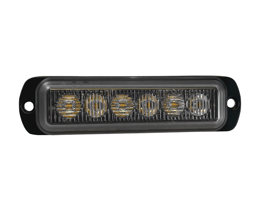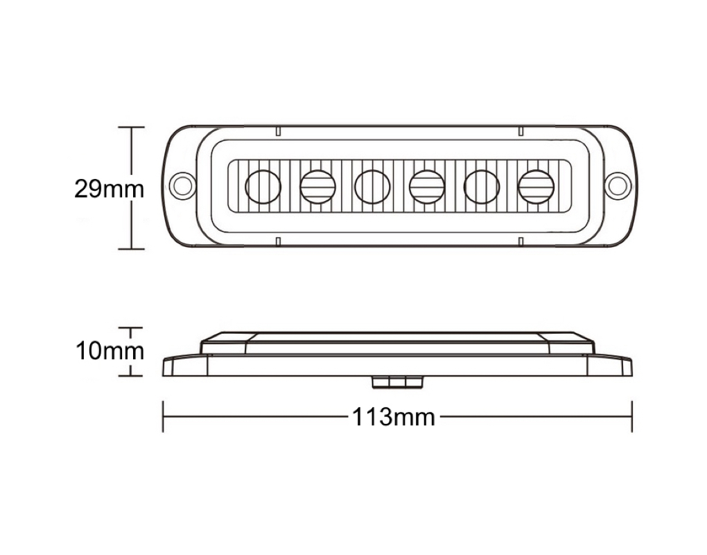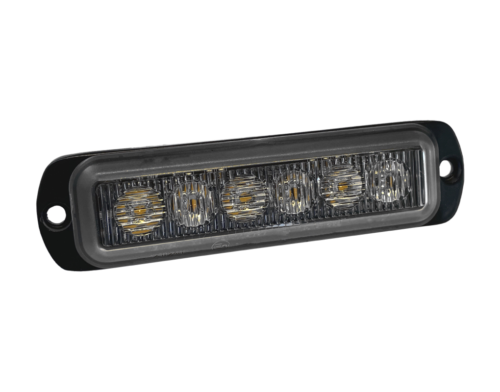 ŠIFRA: ELEO59616Svetilka bliskajoča s šestimi oranžnimi LED diodami. Dimenzije bliskajoče svetilke so 113x29mm in debelino 10mm. Deluje na električni napetosti od 12 do 24V. Ima 21 vzorcev bliskanja ter je ECE homologirana. Na površino se pritrdi z dvema vijakoma.