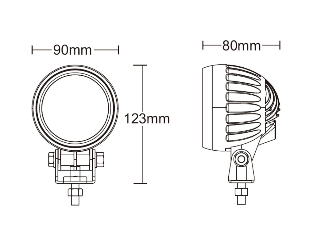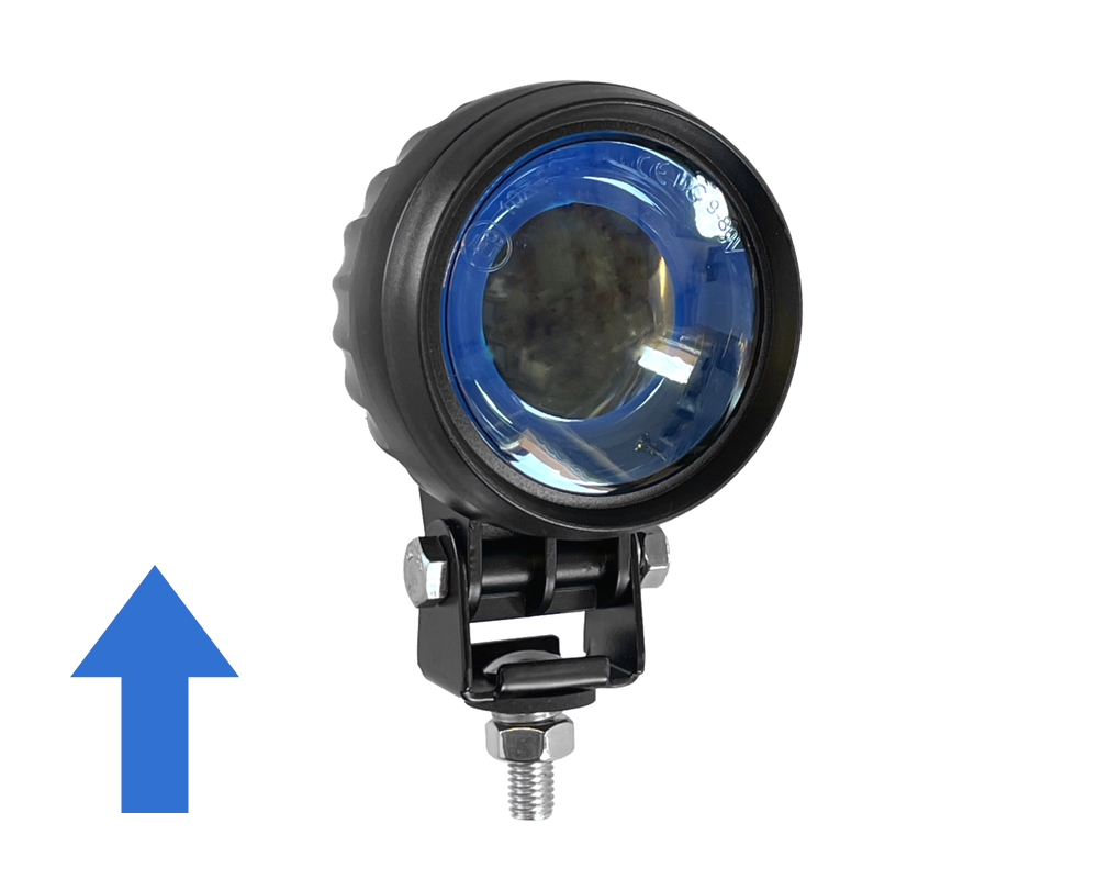 Žaromet delovni LED z dimenzijami ø90x80mm deluje na napetosti od 12 do 80V ter močjo 3x3W. Projecira modro puščico, s katero opozarja na bližino in smer premikajočega viličarja, s tem pa povečuje varnost na območju viličarja.