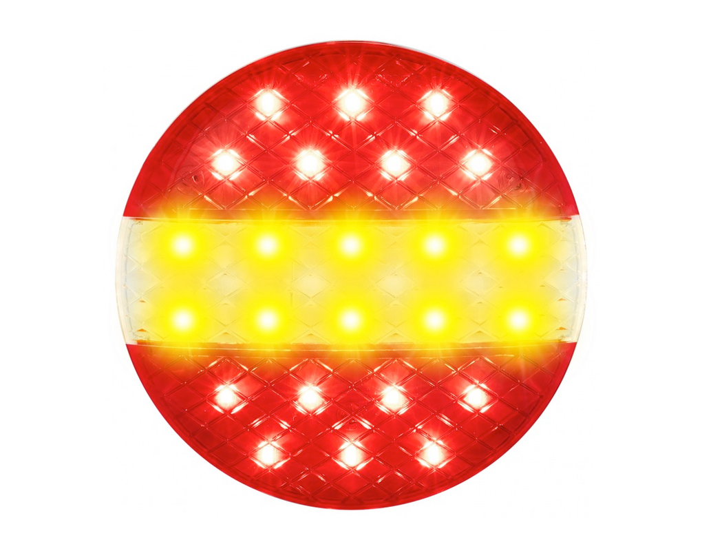 Tri-funkcijska zadnja LED svetilka s premerom 140mm, deluje na električni napetosti od 12 do 24V. Ima tri funkcije: pozicija, stop in smerokaz. Montaža na levo ali desno zadnjo stran vozila.