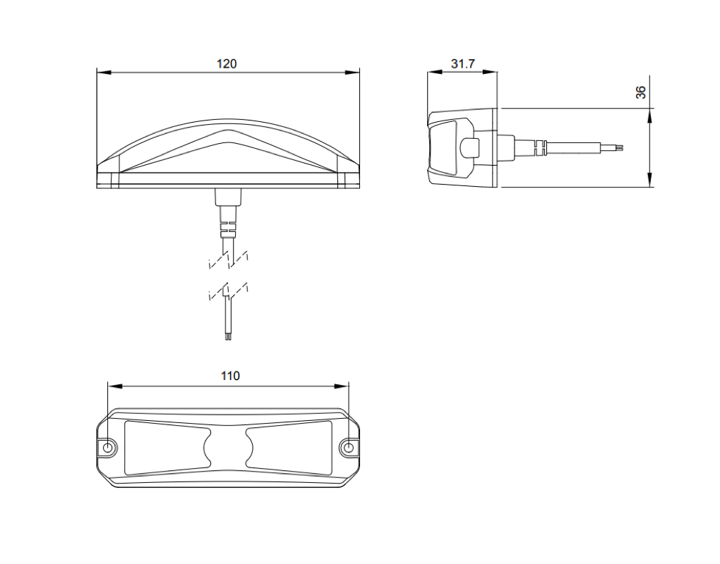 ŠIFRA: ELEB10XSvetilka bliskajoča z modrimi LED diodami sveti v širokem kotu 180º. Ima dimenzije 120x36x32mm in deluje na električni napetosti od 10 do 30V. Ima 10 vzorcev bliskanja ter je ECE in EMC homologirana. Na površino se pritrdi z dvema vijakoma.