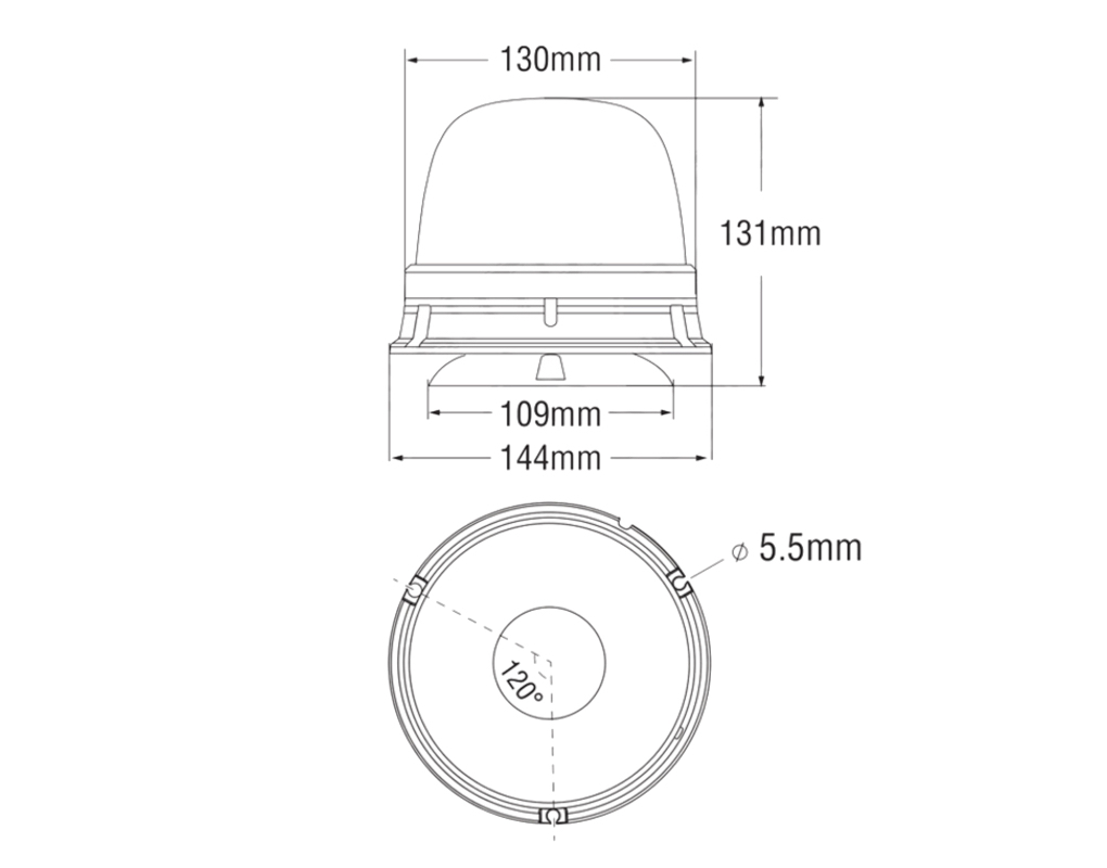 Svetilka strešna LED bliskajoča oranžne barve s premerom 143mm (130mm steklo) deluje na električni napetosti od 12 do 24V. Na površino se namesti z magnetno ali vakuumsko podlogo.