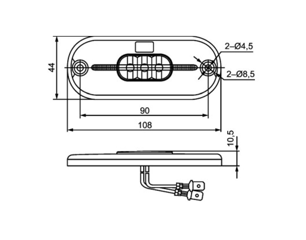 Oranžna LED bočna pozicijska svetilka ima dimenzije 108x44mm. Deluje na električni napetosti 12V. Svetilka je homologirana.