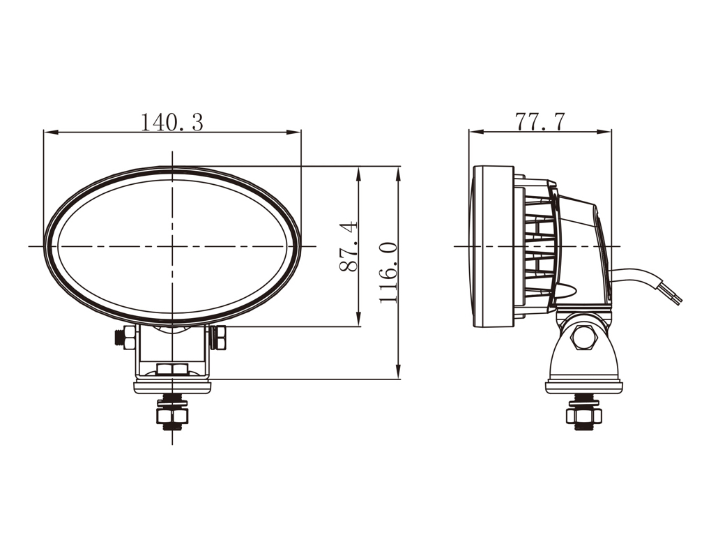Delovni žaromet LED ovalen 140x88mm 30W 10-32V Flood obračljiv nosilec