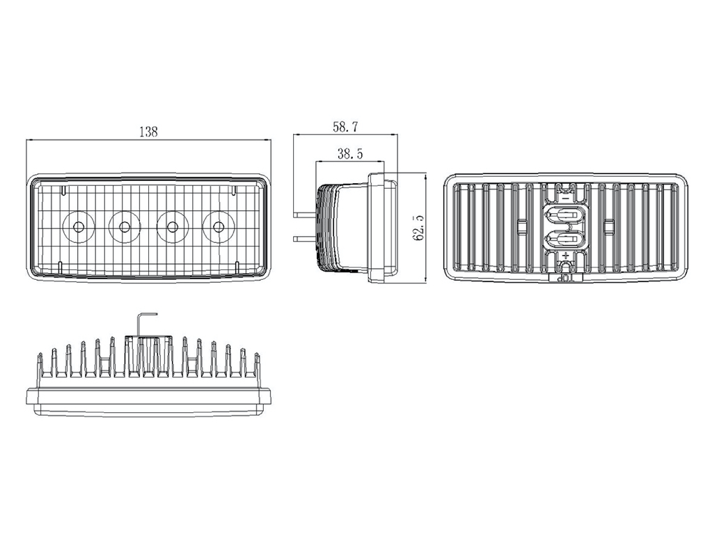 ŠIFRA: EWL511212Žaromet delovni LED vgradni z dimenzijami 136x61mm in nazivno močjo 12W, deluje na električni napetosti od 9 do 32V. Delovni žaromet sestavljajo štiri 3W LED diode s skupno svetilnostjo 960Lm.