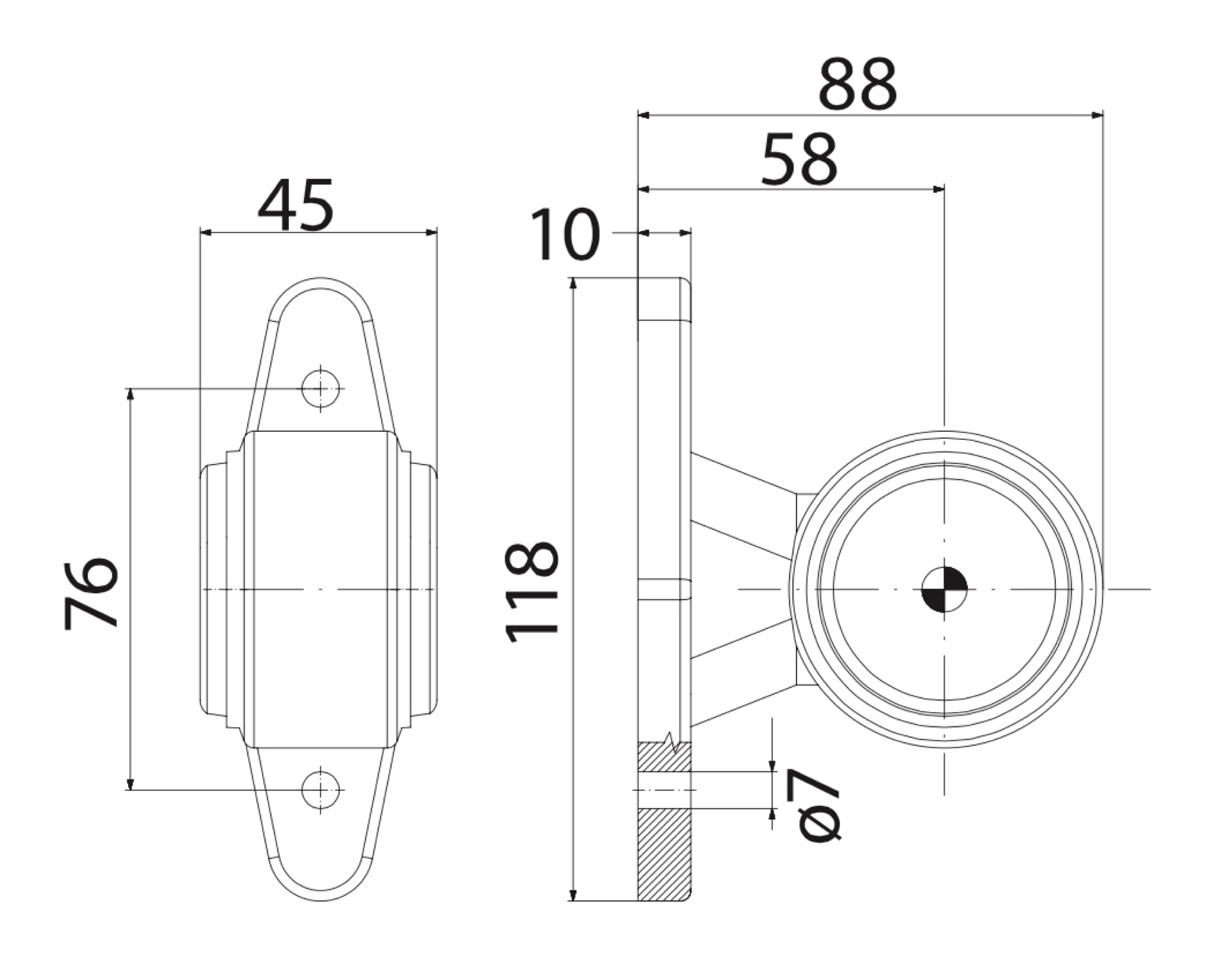 ŠIFRA: EX048A009Kombinirana desna/leva pozicijska svetilka ima dimenzije 118x45x88mm in deluje na električni napetosti od 12 do 36V. Je na kratki gumi in ovalnim podnožjem ter z LED svetilkama rdeče in bele barve. Svetilka je vodotesna in homologirana. Montaža na levo ali desno stran.