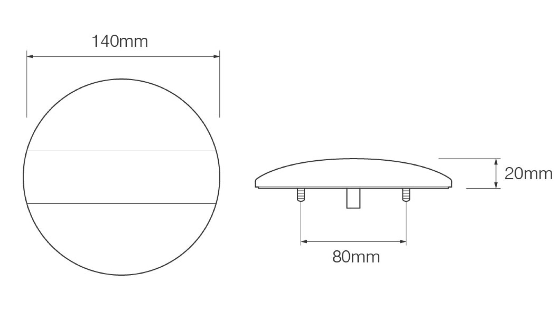 Svetilka zadnja LED s premerom 140mm, deluje na električni napetosti od 12 do 24V. Ima dve funkciji: pozicija, vzvratna svetilka. Montaža na levo ali desno zadnjo stran vozila.