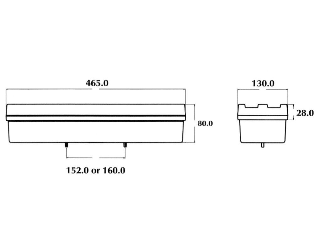 ŠIFRA: ES302040Svetilka zadnja z dimenzijami 465x130mm ima rebrasto steklo. Priklop s kablom. Montaža na desno zadnjo stran vozila.